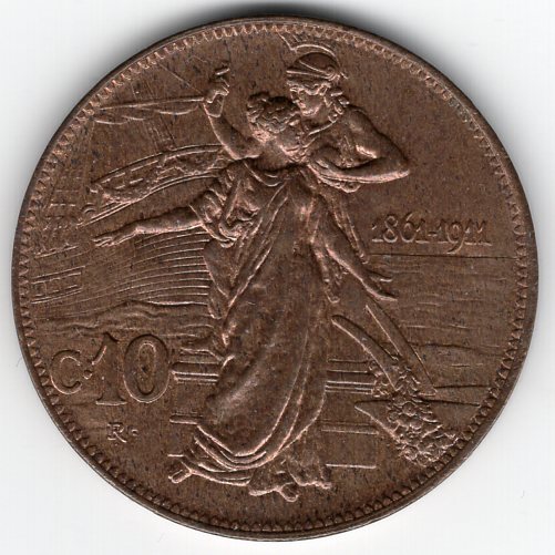 Vittorio Emanuele III (1900-1943): 10 cent. 1911 "Cinquantenario" (Gigante#227), rame rosso