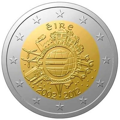 Irlanda 2012: 2 euro commemorativi "Decennale dell'Euro"
