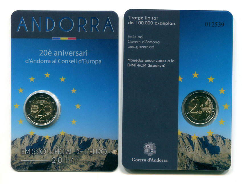 Andorra 2014: 2 euro "Consiglio d'Europa", nella coincard ufficiale