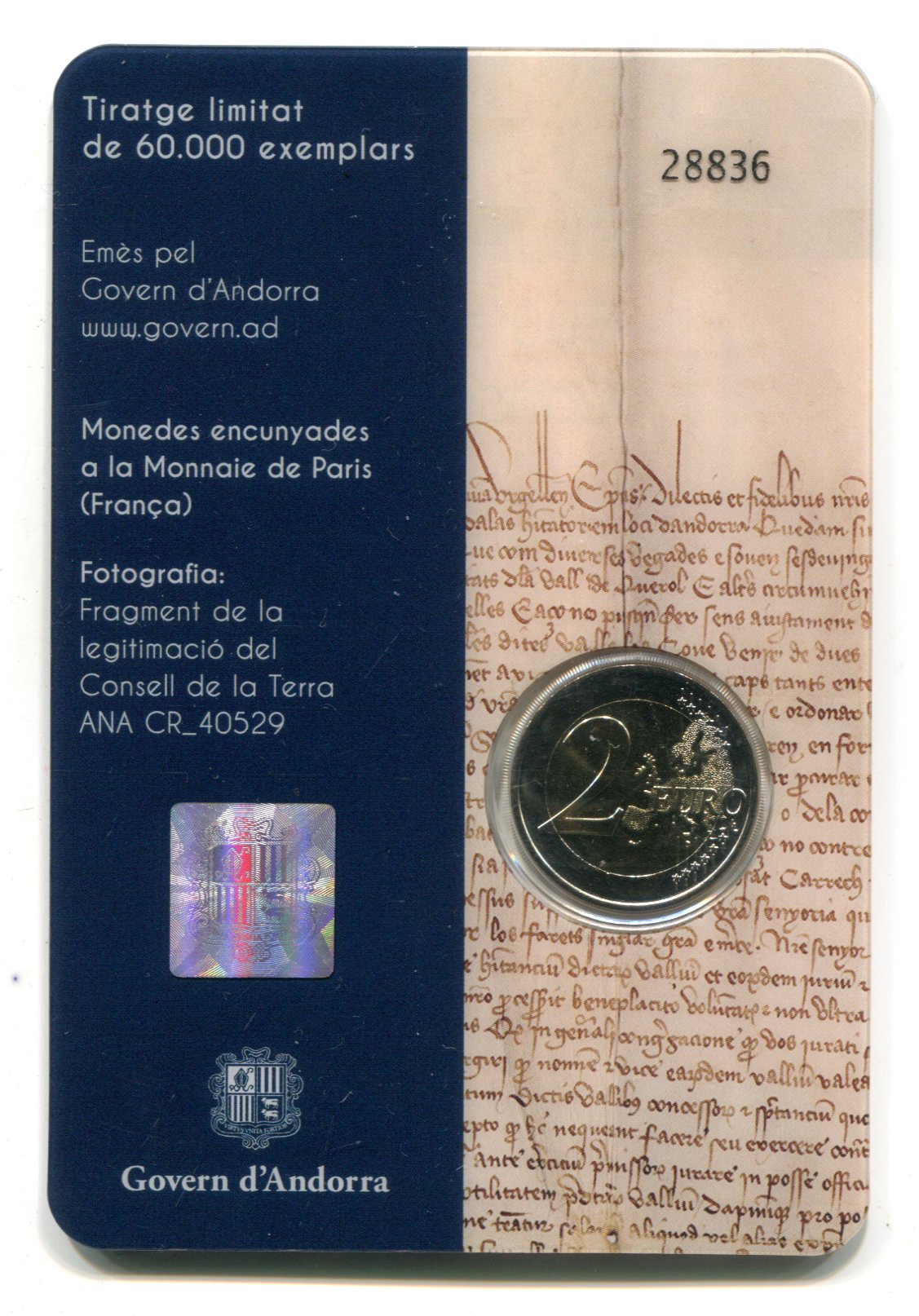 Andorra 2019: 2 euro "600° Anniversario del Consell de la Terra"