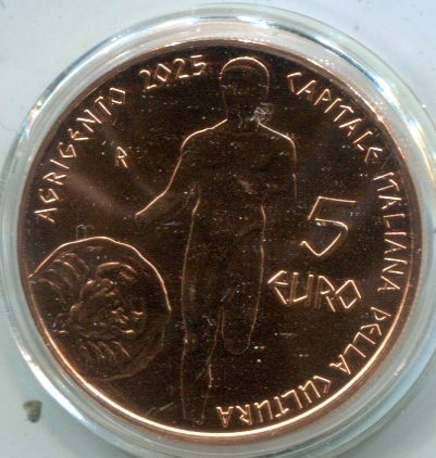 Italia 2025: 5 euro "Capitali della cultura: Agrigento", nella confezione originale. Coniati 4.000 pezzi.