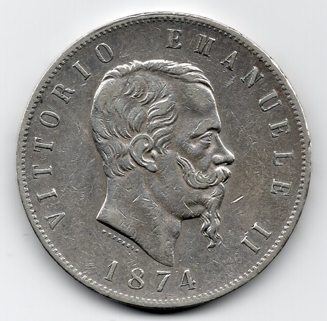 Vittorio Emanuele II (1861-1878): 5 lire 1874-Mi (Gigante#48)