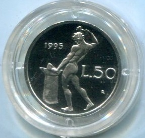 Repubblica Italiana (dal 1946): 50 lire 1995 "Vulcano", da confezione zecca