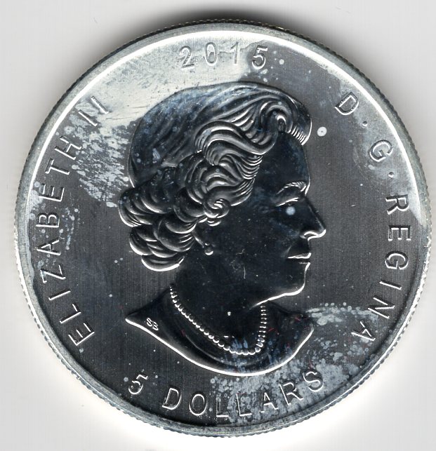 Canada, Elisabetta II (1952-2022): 5 dollari 2015 "GUFO", white milk spots -Oncia-