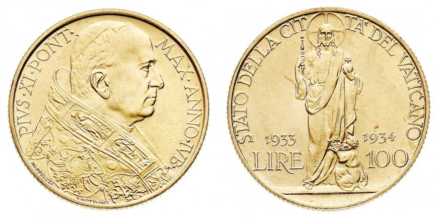 Vaticano, Pio XI (1929-1938): 100 lire 1933-34 (Gigante#5)