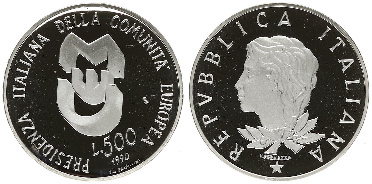 Repubblica Italiana: 1990, 500 lire "Presidenza CEE", da confezione zecca, senza scatola