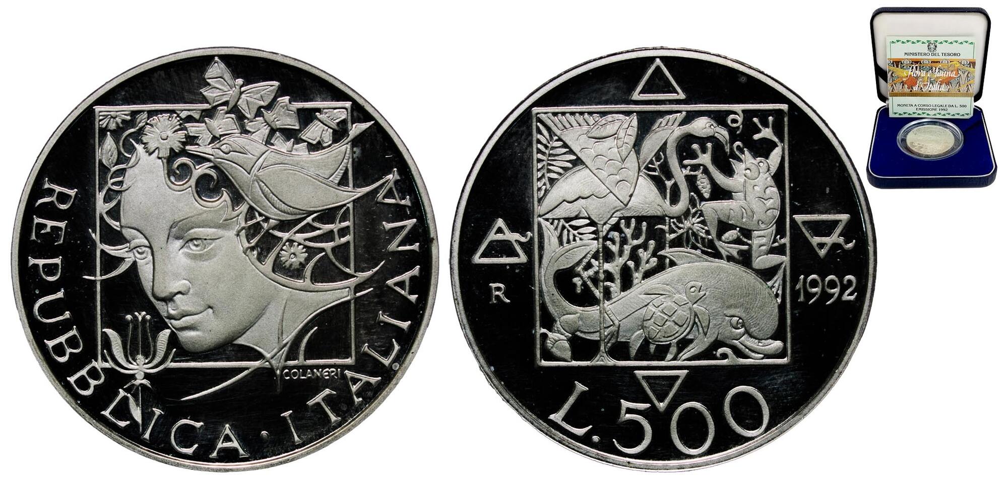 Repubblica Italiana: 1992, 500 lire "Flora e Fauna", seconda serie