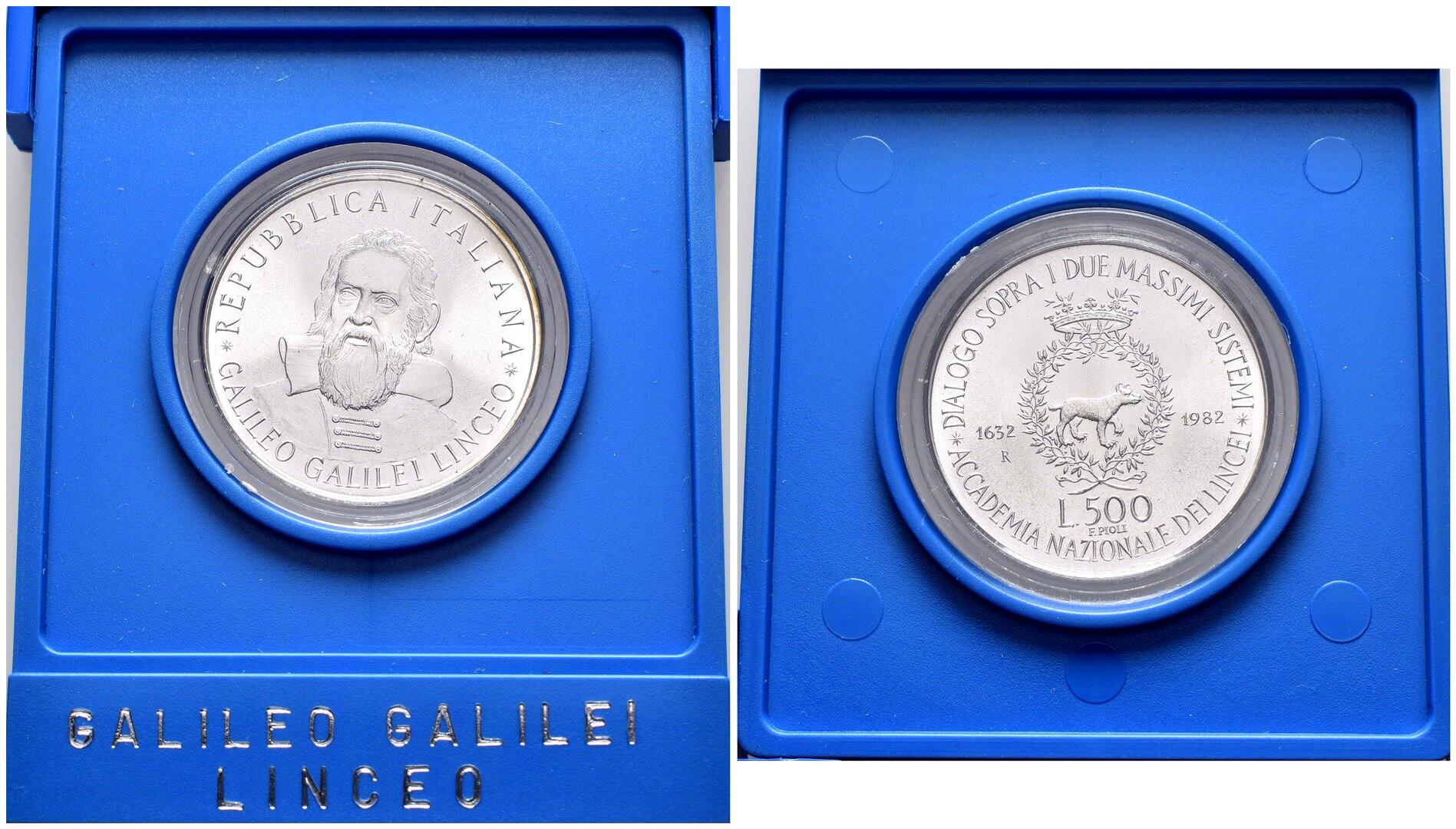 Repubblica Italiana: 1982, 500 lire "Galilei", nella confezione originale