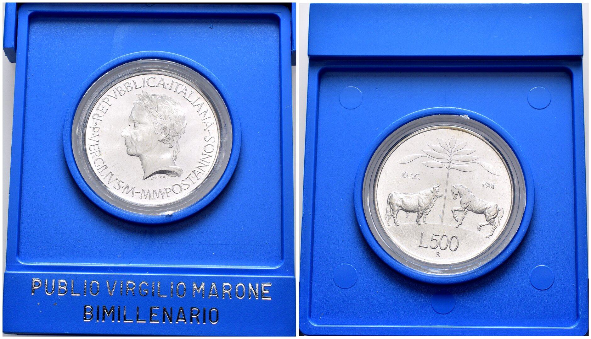 Repubblica Italiana: 1981, 500 lire "Virgilio", nella confezione originale