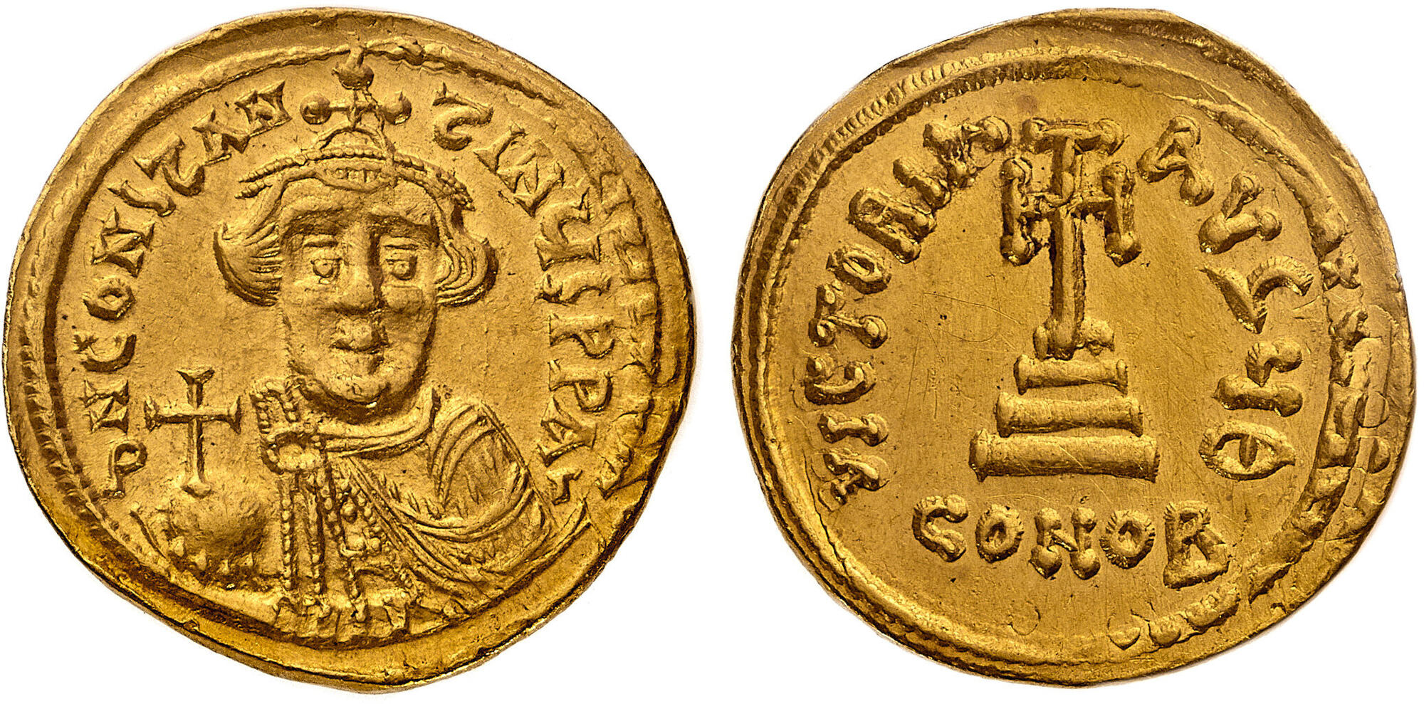 Costante II (641-668 d.C.): solido, zecca di Costantinopoli (Sear#938; DOC,II,2,421#1i; Ratto#1511), grammi 4.33, sigillato Umberto Moruzzi