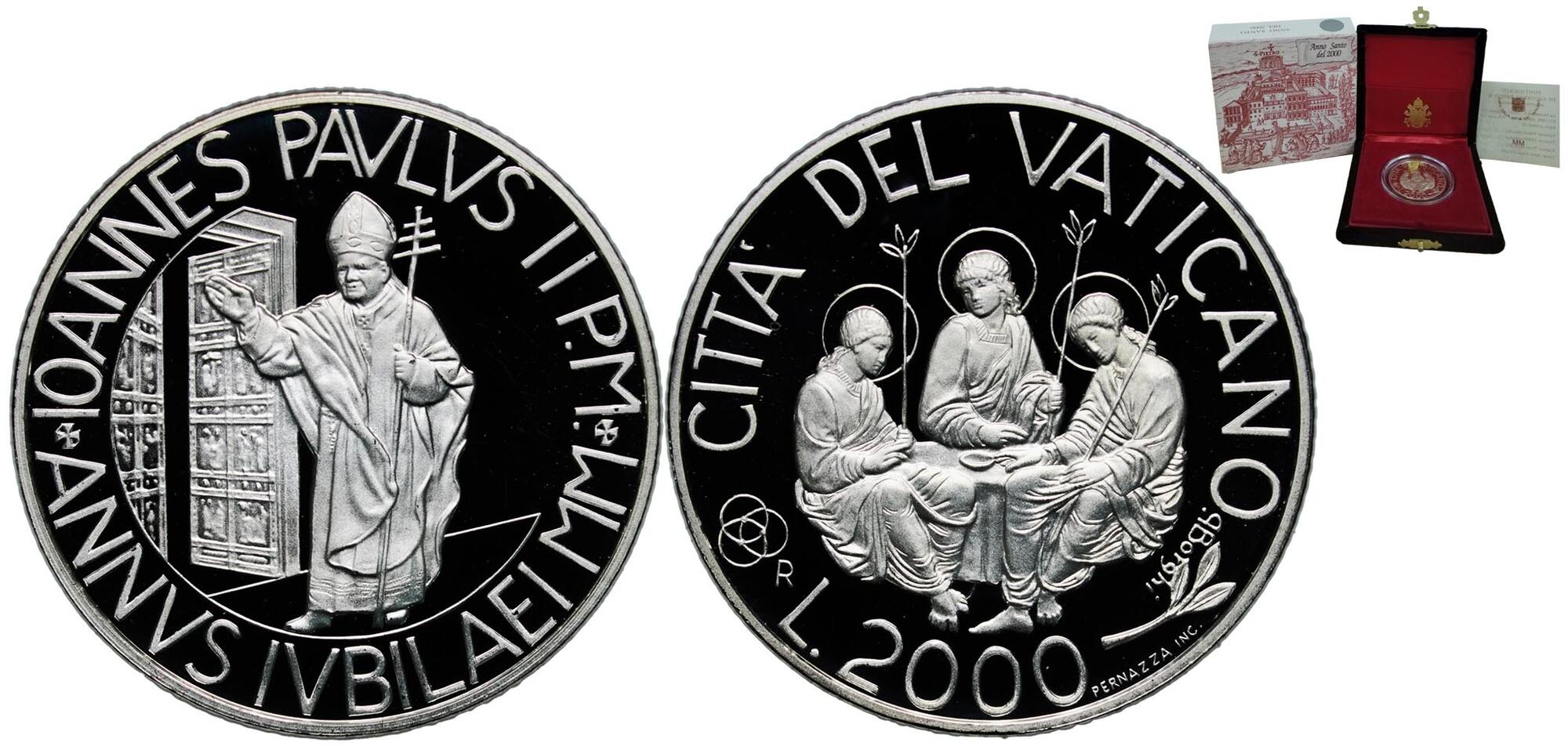 Vaticano, Giovanni Paolo II (1978-2005): 2000 lire 2000-XXII "Anno Santo" (Gigante#341), in confezione originale