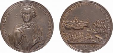 Germania, Prussia, Federico II il Grande (1740-1786): medaglia 1757 per la presa di Praga (Olding#605; Henckel#1621), diametro 37 mm, grammi 11.57