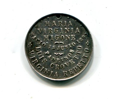 Perù: medaglia battesimale 1893, gr. 4,95, diametro 23mm