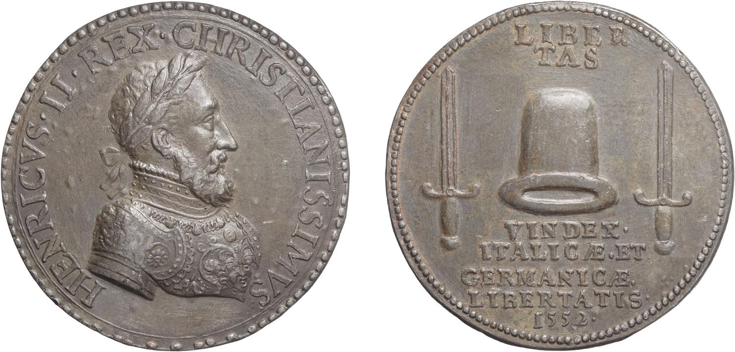 Francia, Enrico II (1547-1559): medaglia per l'alleanza del 1552 con i principi tedeschi, probabile produzione settecentesca. Grammi 54.38, mm 58