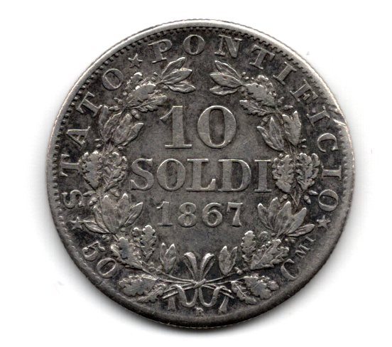 Roma, Pio IX (1846-1870): 10 soldi 1867-XXII (Gigante#306)