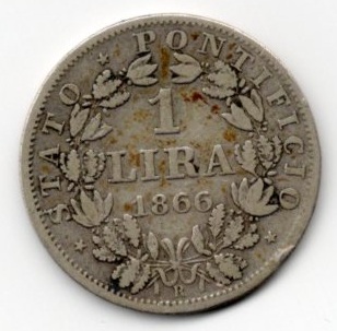 Roma, Pio IX (1846-1870): 1 lira 1866-XXI "Busto Grande" (Gigante#297)