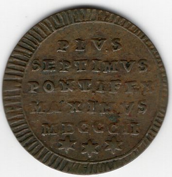 Roma, Pio VII (1800-1823): quattrino, secondo tipo 1802 (Gigante#72)