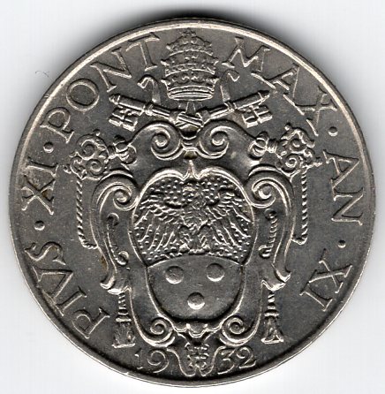 Vaticano, Pio XI (1929-1938): 1 lira 1932-XI