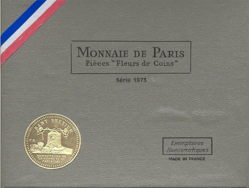 Francia, Quinta Repubblica (dal 1959): serie zecca 1973, 8 pezzi nella confezione ufficiale con scatola, busta e foglietto descrittivo