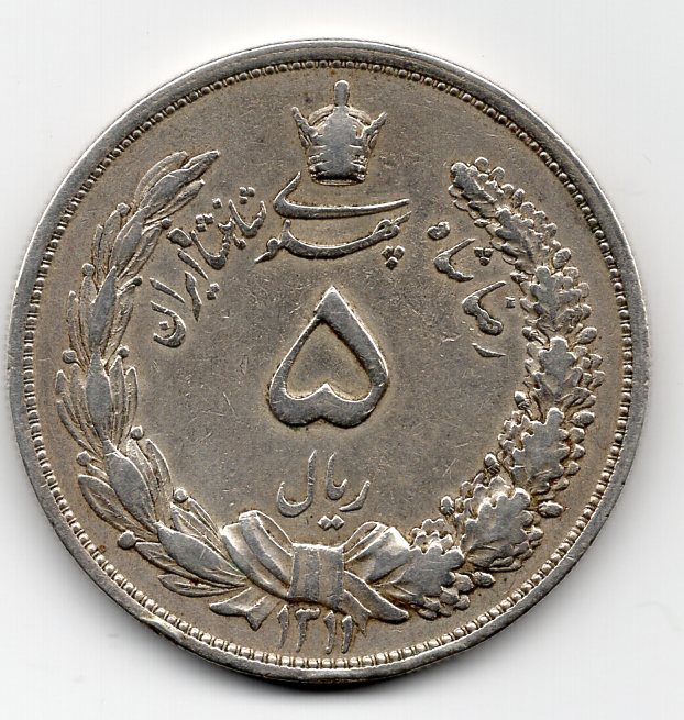Iran, Reza Shah (1344-1360/1925-1941): 5 rials 1311 (KM#1131)