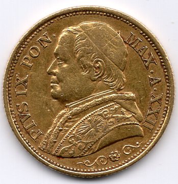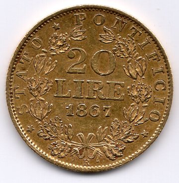 Roma, Pio IX (1846-1870): 20 lire 1867-XXII (Gigante#268)