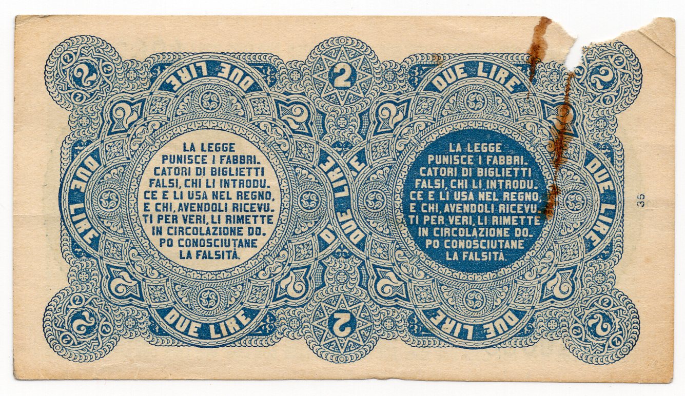 Regno, Biglietti Già Consorziali: 2 lire 25/12/1881 (Gigante#BGC2A), mancanza e strappi