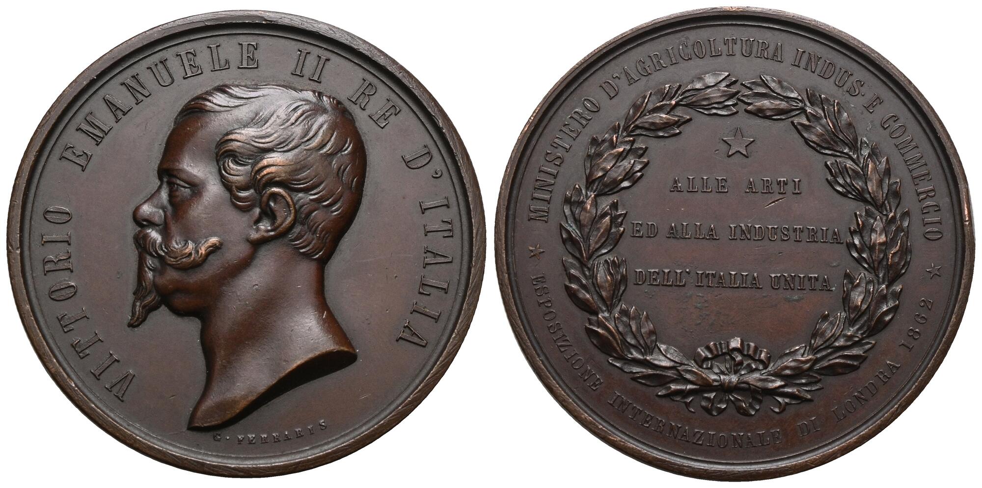 Vittorio Emanuele II: medaglia 1862 "Esposizione Internazionale di Londra", gr.100.75, diametro 57 mm, opus G.Ferraris, colpetto