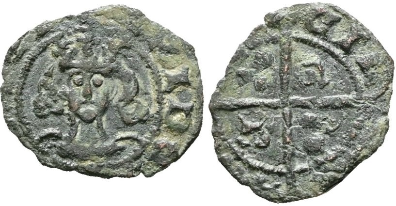 Sciacca, Federico IV D'Aragona (1355-1377): denaro (MIR#659), grammi 0.50