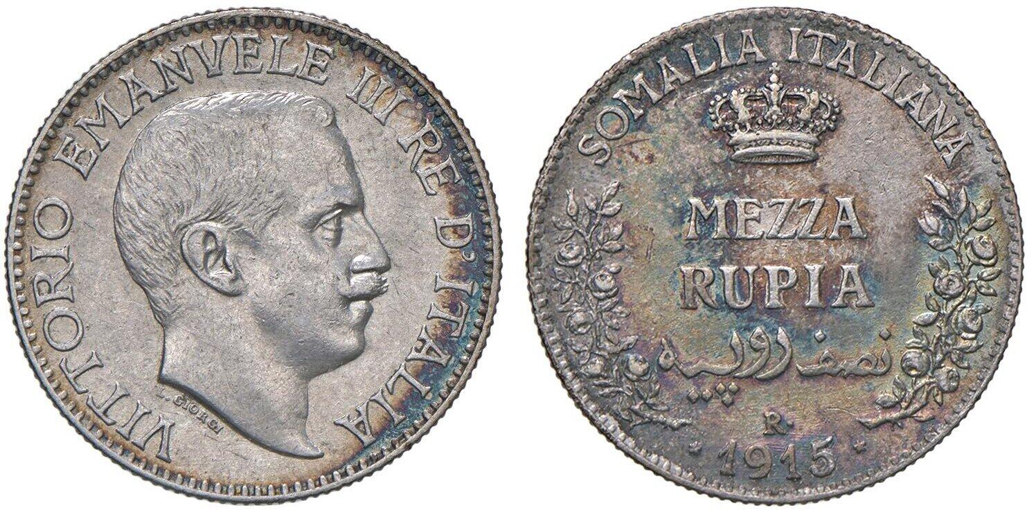 Somalia Italiana, Vittorio Emanuele III (1909-1925): 1/2 rupia 1915 (Gigante#12), bella patina