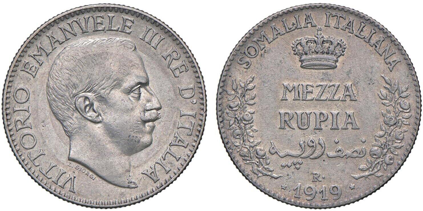 Somalia Italiana, Vittorio Emanuele III (1909-1925): 1/2 rupia 1919 (Gigante#13)