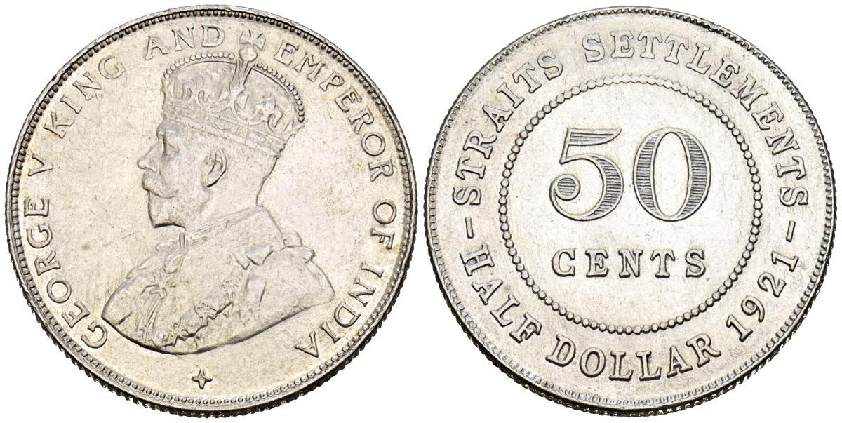 Straits Settlements, Giorgio V (1910-1936): 50 cent 1921 (KM#35.1)