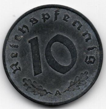 Germania, Terzo Reich (1933-1945): 10 reichspfennig 1943-A (KM#101)