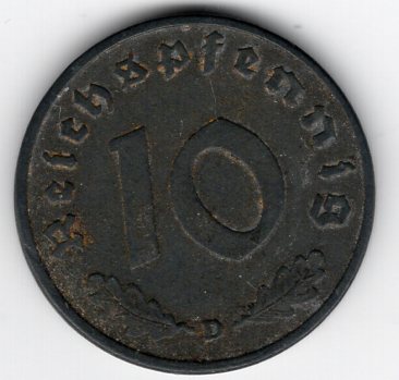 Germania, Terzo Reich (1933-1945): 10 reichspfennig 1941-D (KM#101)