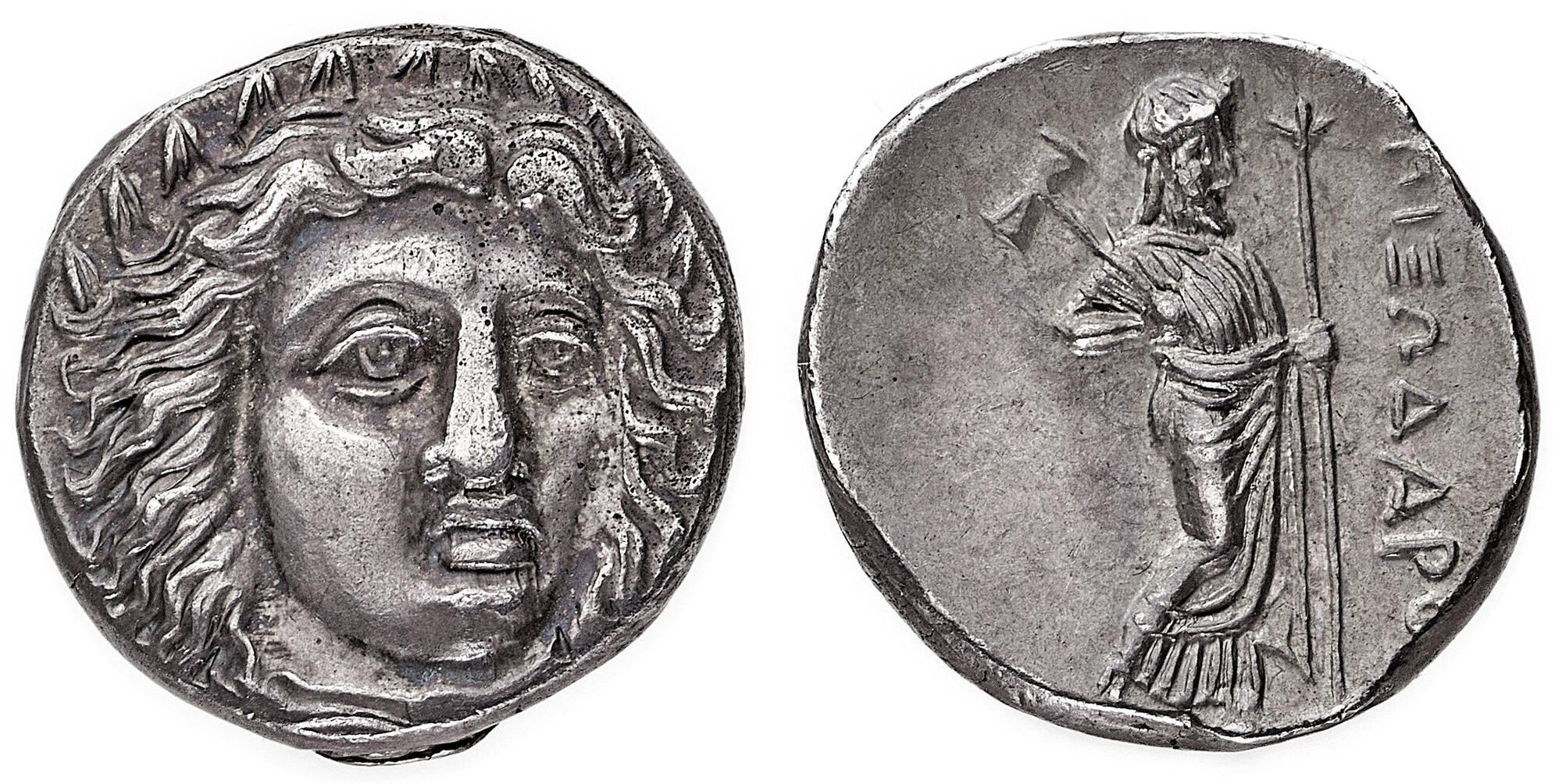 Cilicia, Pixodauro (340-334 a.C.): didramma, zecca di Alicarnasso (Sng Von Aulock#2376), grammi 6.97. Un vecchio cartellino indica che fu acquistata presso NAC nell'ottobre del 1993 per 900 chf