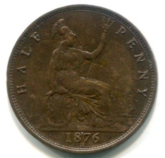 Gran Bretagna, Vittoria (1837-1901): 1/2 penny 1876 (Spink#3956)