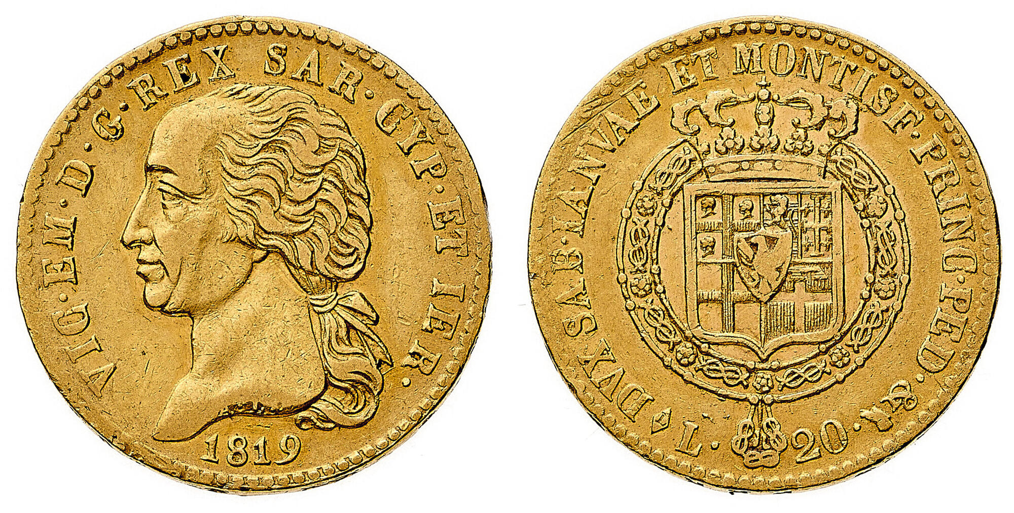 Vittorio Emanuele I (1802-1821): 20 lire 1819 (Gigante#14)